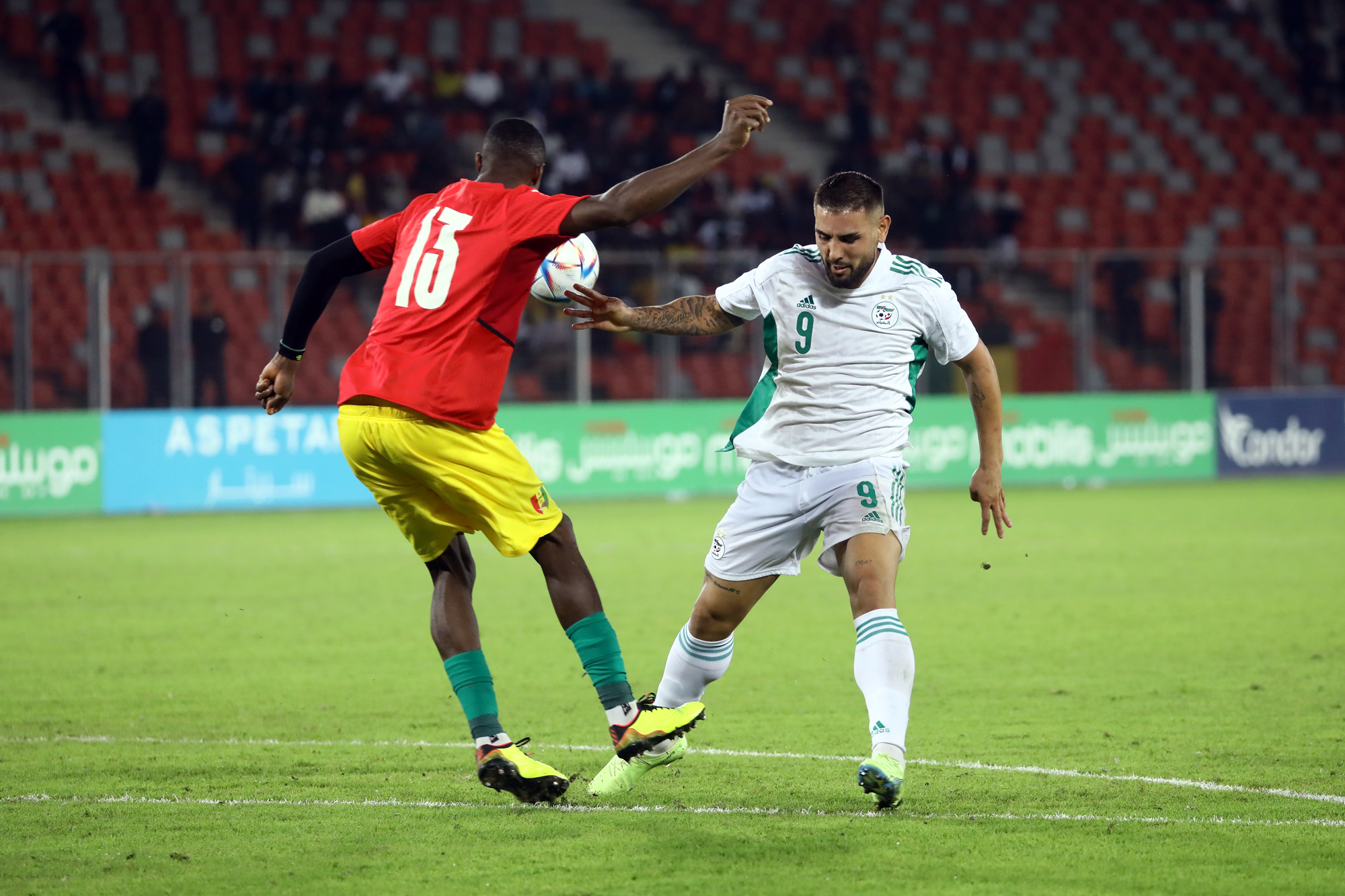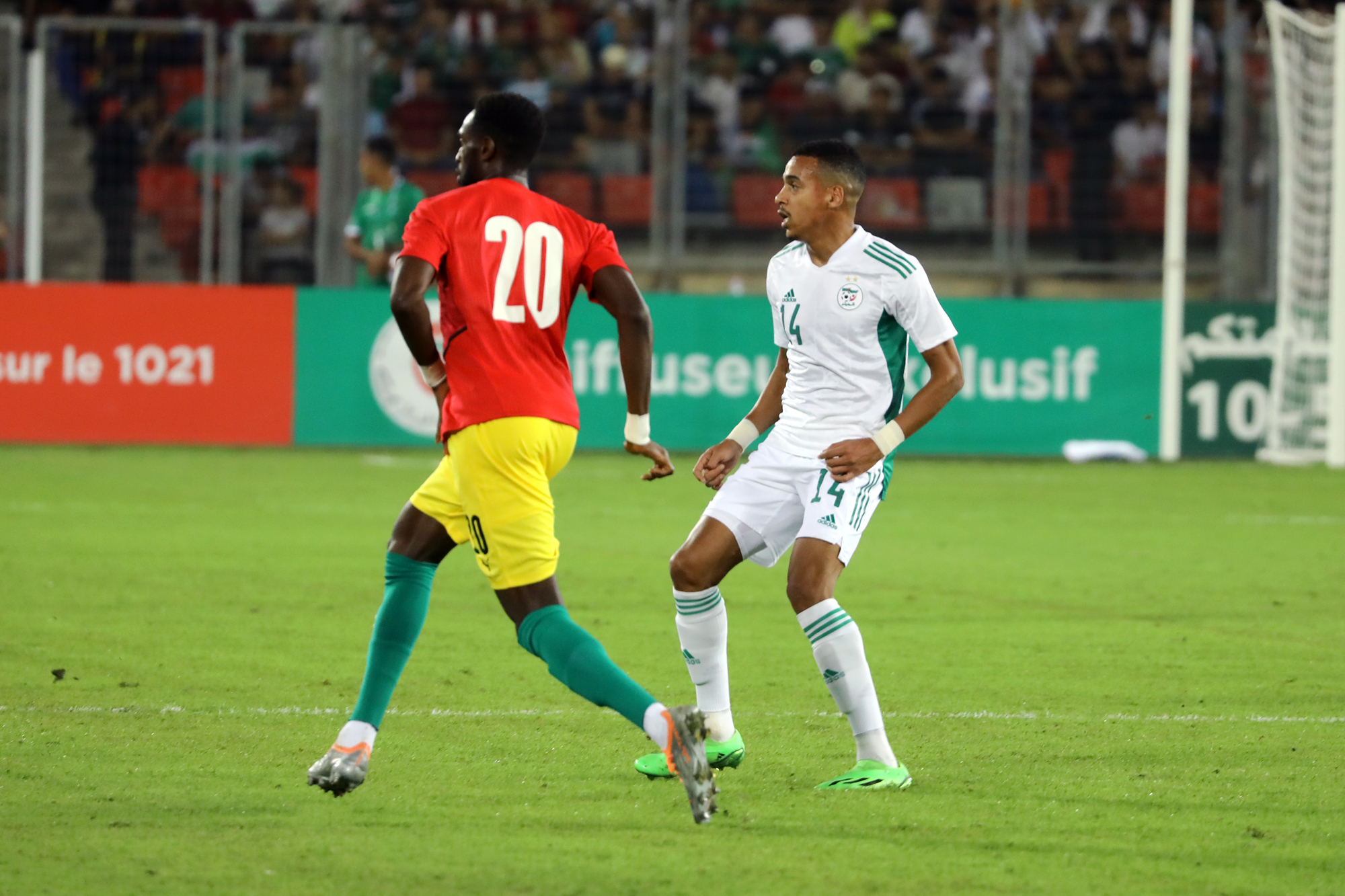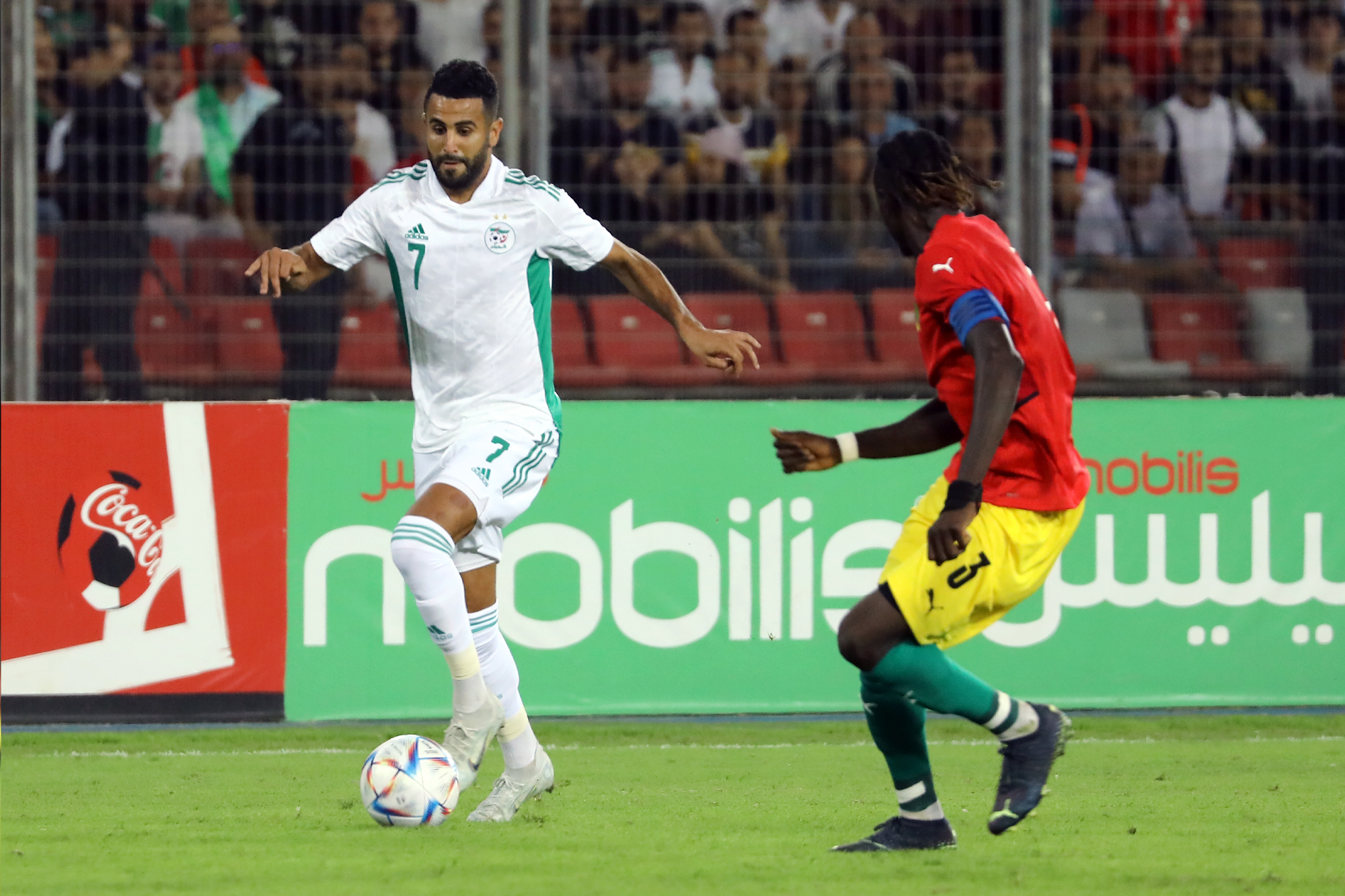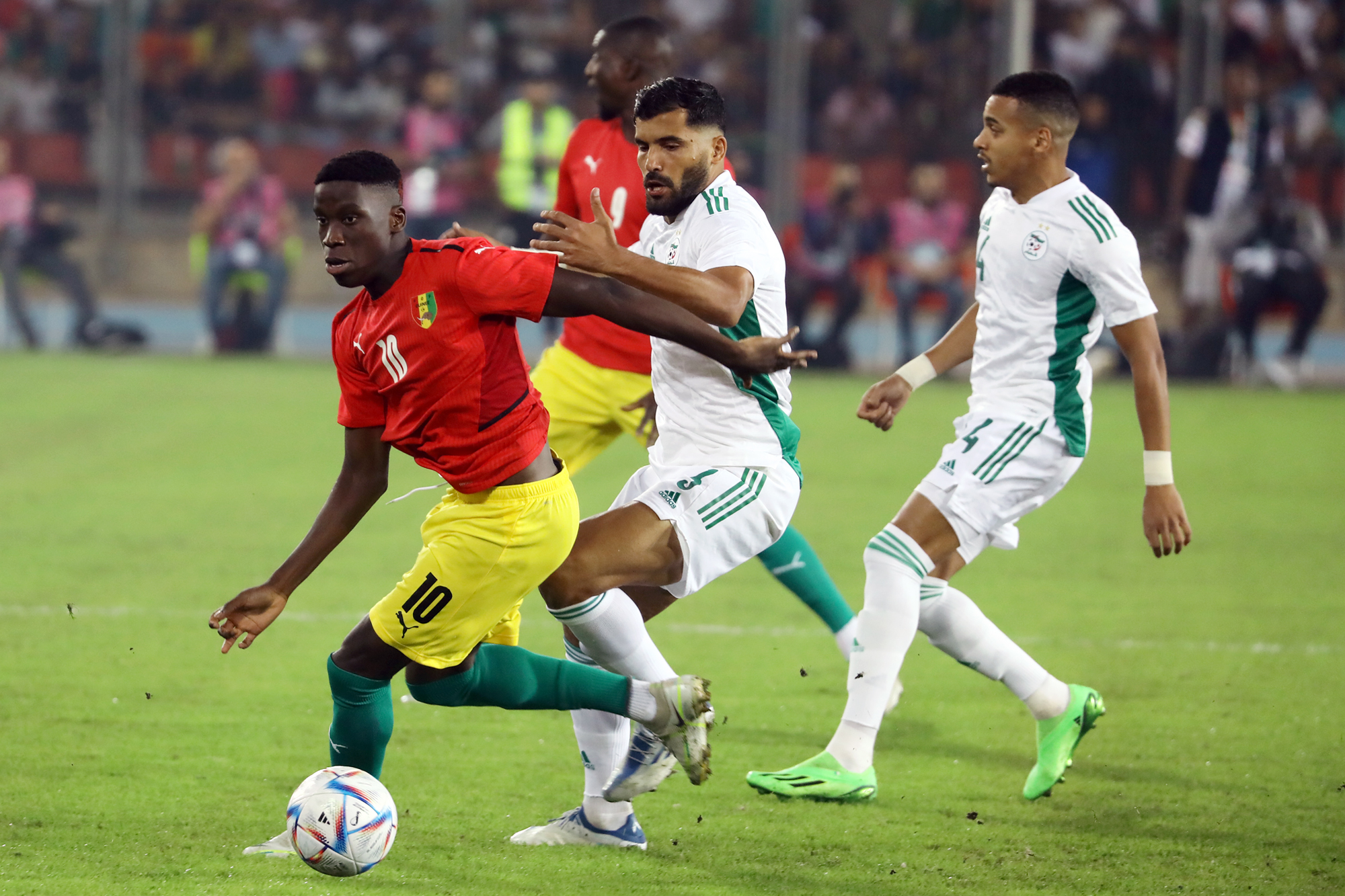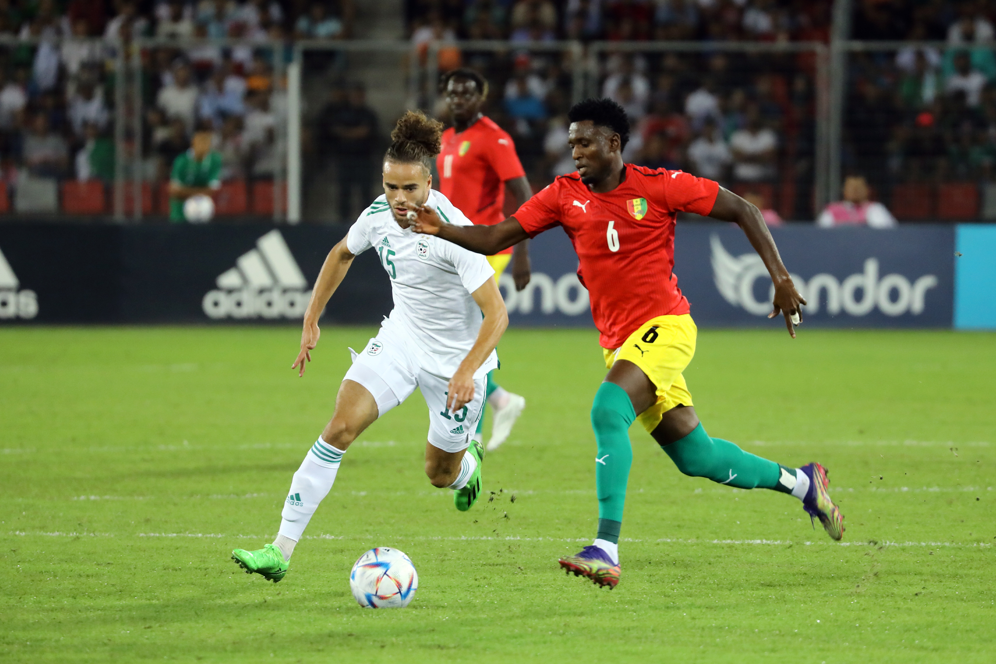 Pour le retour des Verts à Oran, dix-sept ans après, à l’occasion de la réception de la Guinée au Stade Miloud Hadefi, Djamel Belmadi a décidé de présenter une équipe new-look à un public « oranais » qui vivait cet événement avec toute la ferveur et la joie de vivre qu’on lui connait. Des habituels titulaires, seuls Bensebaini, Bedrane et Bennacer débutaient. Articulée derrière Andy Delort, seul en pointe, dans son système habituel en 4-3-3, l’équipe nationale aura franchement du mal durant la première mi-temps à asseoir son jeu. Et sa domination. Pis, elle buttera sur une équipe guinéenne solide et agressive à souhait. Ce qui a fortement gêné l’évolution du onze algérien sur le terrain. Cette mauvaise entame de match des Algériens est cristallisée par le raté monumental de Mohamed Bayo qui, dès la deuxième minute de jeu, se retrouve seul face aux buts. Servi en profondeur, il ajuste Zeghba, mais son tir fut détourné in extremis par Bedrane. L’intervention en catastrophe de ce dernier lui coûtera sa place puisqu’il sera remplacé dans la foulée pour blessure. Le même Bayo prend de vitesse Aissa Mandi, qui remplaçait quelques minutes auparavant Abdelkader Bedrane, et manque de peu l’ouverture du score, son tir ayant rasé le montant droit du gardien des Verts (28’).