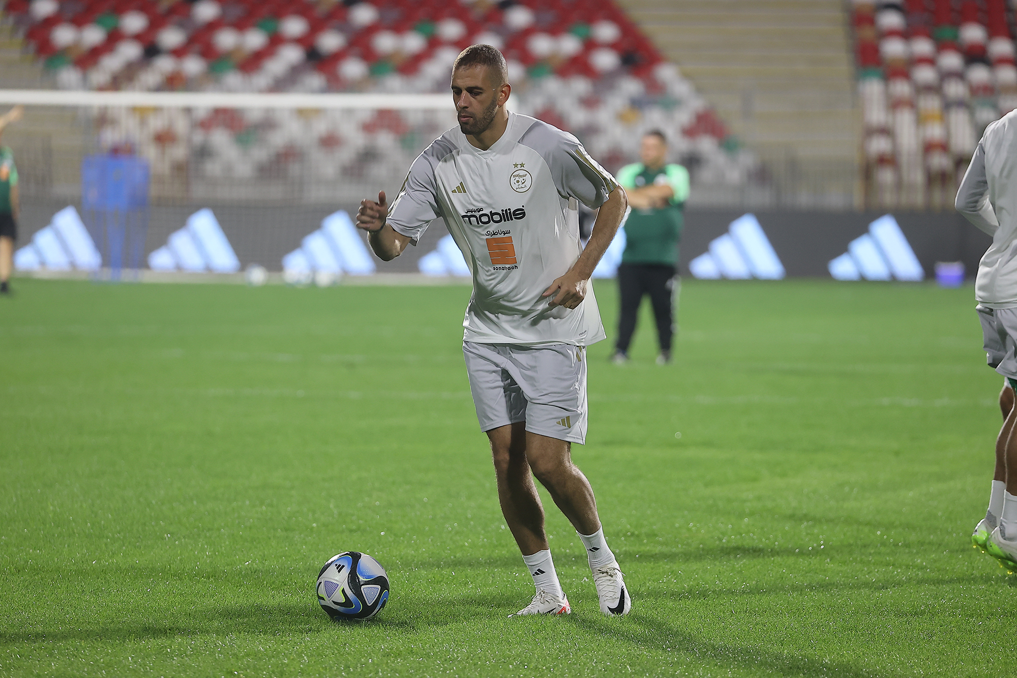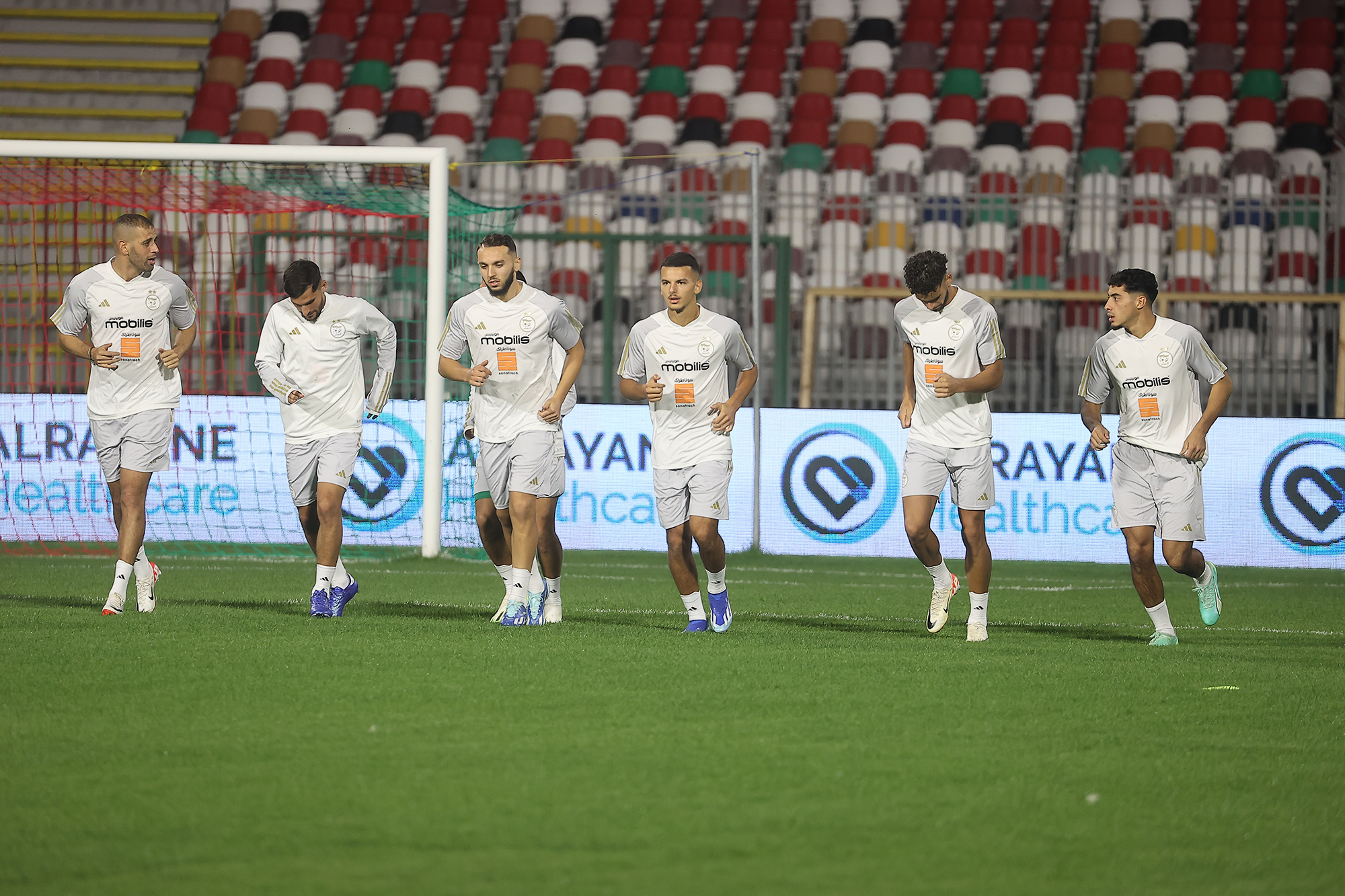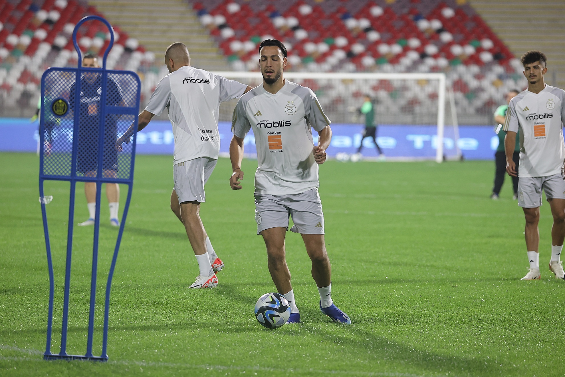 Après leur arrivée à Constantine, les Verts se sont entrainés au stade Hamlaoui pour leur deuxième séance d’entraînement depuis le début du stage, cette fois-ci avec la présence de l’attaquant Islam Slimani, qui est arrivé en retard. Encore faut-il rappeler qu’avant de rallier Constantine, la sélection algérienne avait effectué sa première séance d’entraînement, la veille, au Centre technique national (CTN) de Sidi Moussa, dans le cadre de la date FIFA du mois d’octobre.