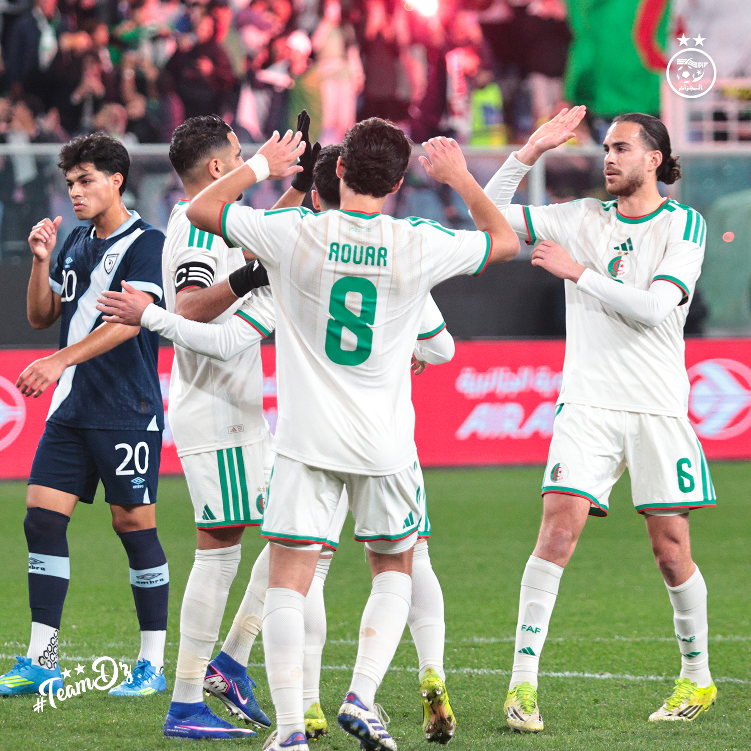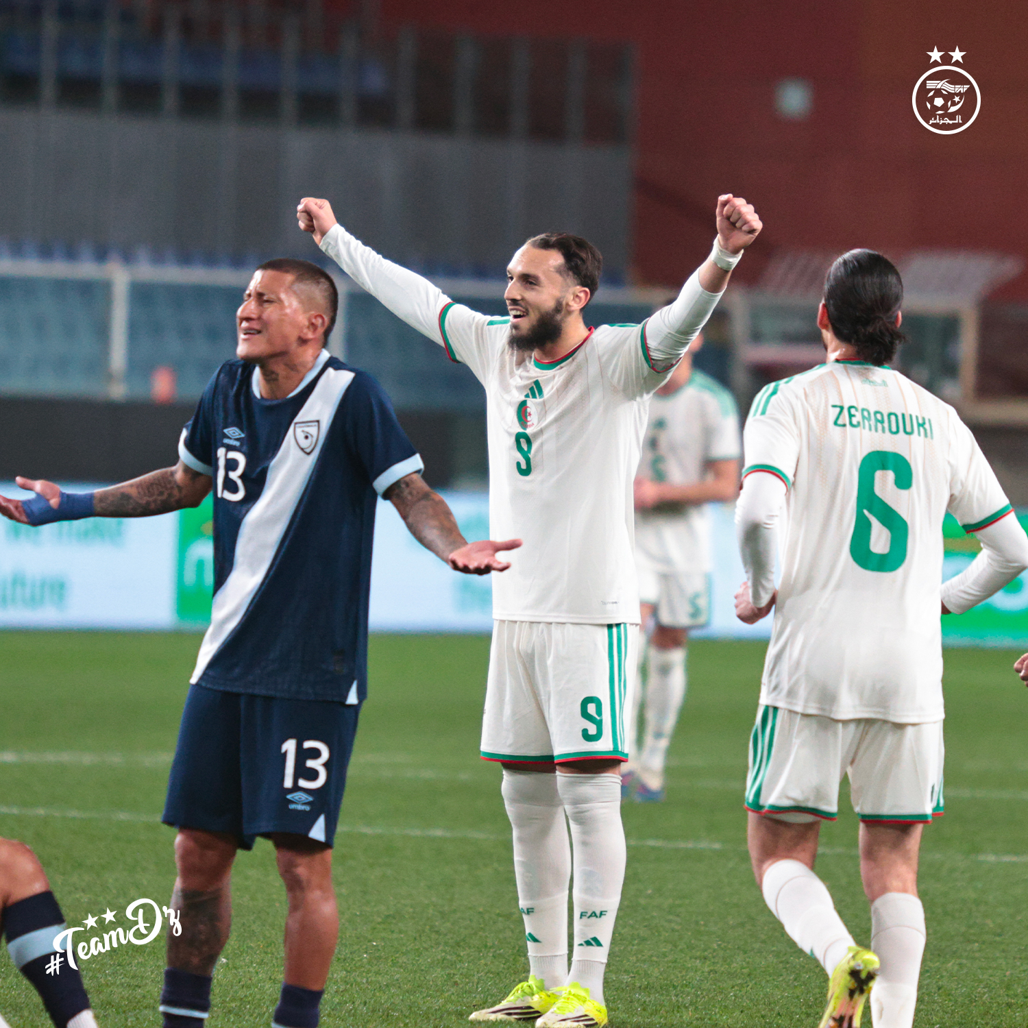 L’Algérie s’est largement imposée face au Guatemala (7-0) au Stadio Luigi Ferraris de Gênes. Dominateurs, les Verts ont maîtrisé la rencontre grâce aux buts de Amine Gouiri (doublé), Riyad Mahrez, Achref Abada, Houssem Aouar, Farès Ghedjemis et Nadhir Benbouali.