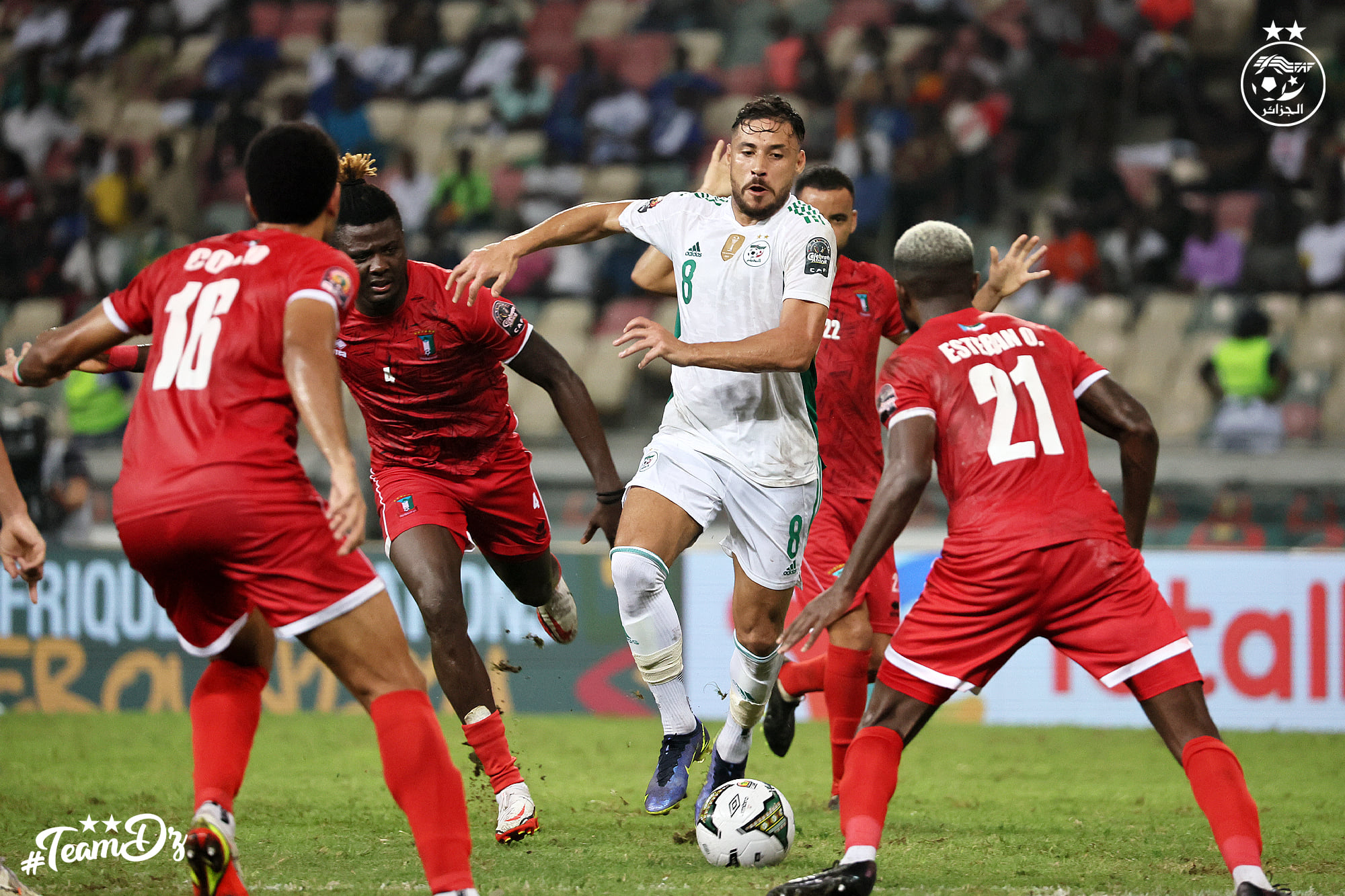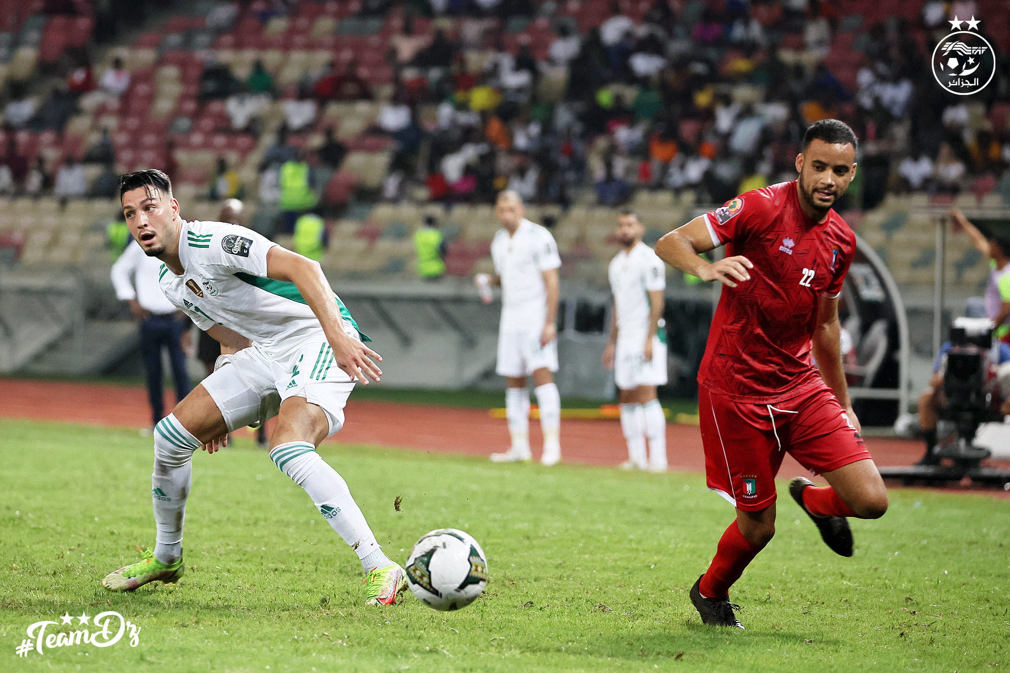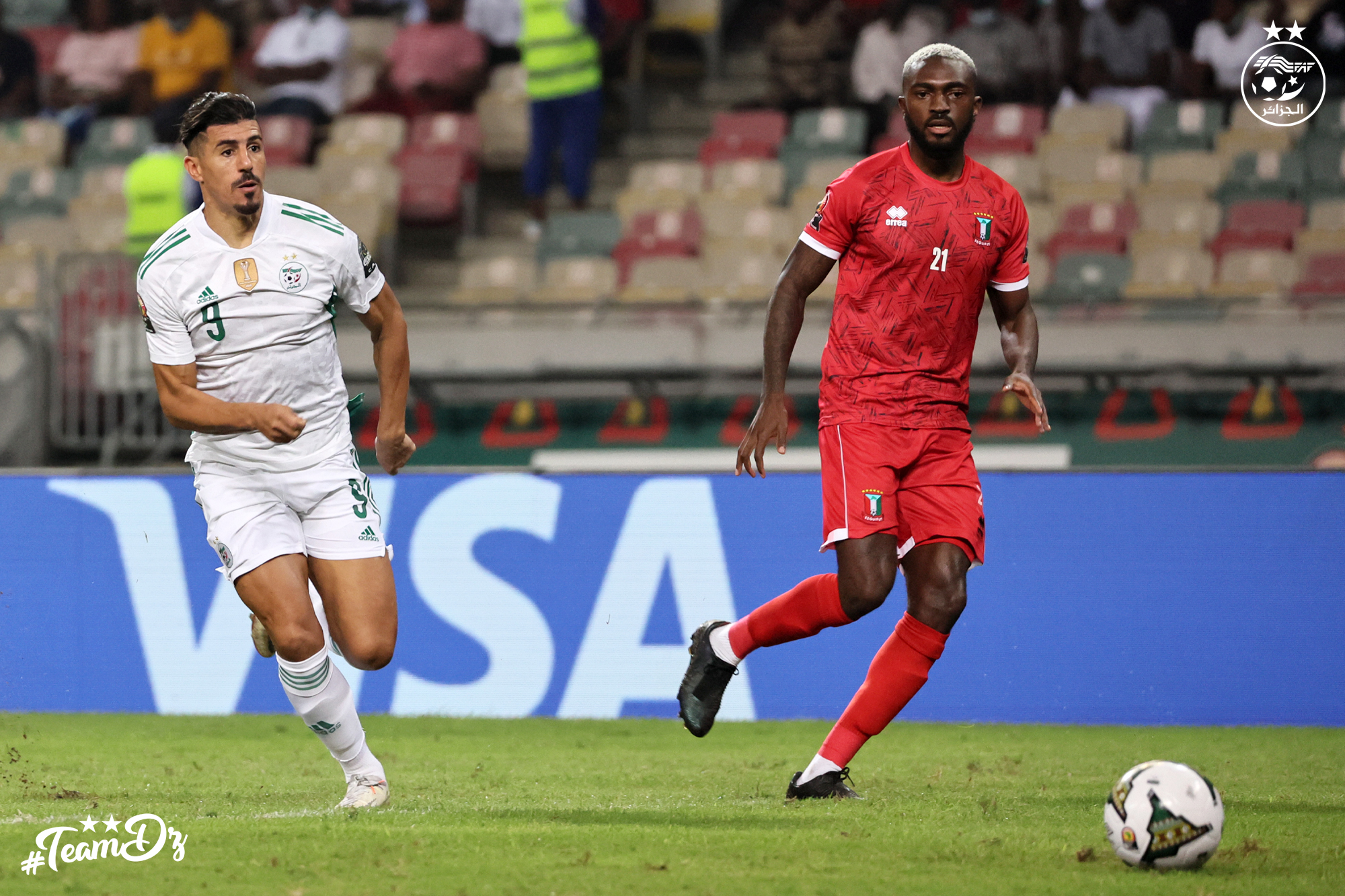 Les Equatoguinéens ont opté pour le jeu de contres face à des Guerriers du Désert qui ont mis le pied sur le ballon. L’axe du jeu étant fermé, les Algériens optent pour les couloirs. Bensebaïni centre vers Belaïli (57′). Mais la tête de ce dernier manquait de précision.