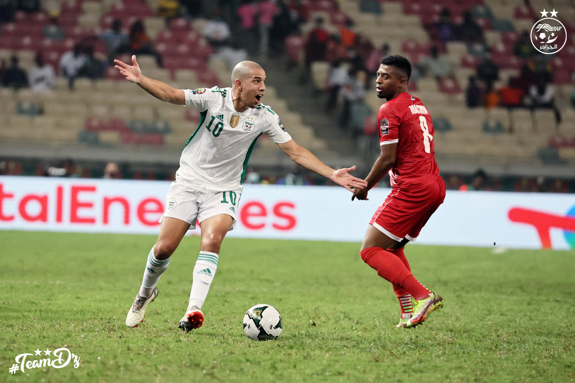 Si le Nzalang s’est montré dangereux dans cet exercice, El-Khadra a réédité les imprécisions habituelles dans le domaine. Illustration avec un coup franc dans un emplacement dangereux que Mahrez n’a pas su matérialiser. Sa frappe était complètement ratée et illustrait l’imprécision montrée par les champions d’Afrique lors du premier acte soldé par un score nul et vierge.