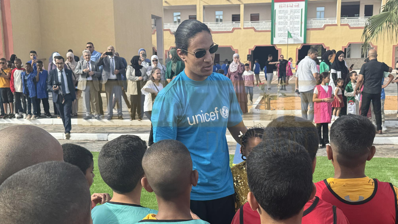 Imane Khelif, médaille d’or olympique de boxe algérienne, a répondu aujourd’hui à une sollicitation d’UNICEF Algérie pour participer à une initiative éducative dans la ville de Ouargla. Invitée pour l’inauguration d’une nouvelle école primaire à l’occasion de la rentrée des classes, la native de Tiaret s’est jointe à une campagne visant à promouvoir le sport et l’exercice physique en milieu scolaire, tout en sensibilisant les jeunes sur l’importance de la lutte contre l’obésité.