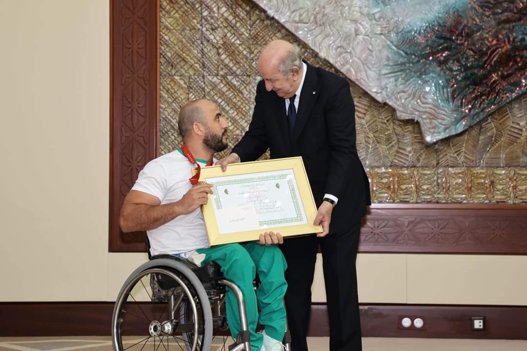 وحظيت العناصر الوطنية المتوجة بالميداليات خلال دورة باريس البارالمبية بشهادات تقديرية ومكافآت مالية والأمر كذلك بالنسبة لمدربيهم. لتختتم مراسم التكريم بأخذ صورية تذكارية للرياضيين المتوجين مع رئيس الجمهورية.