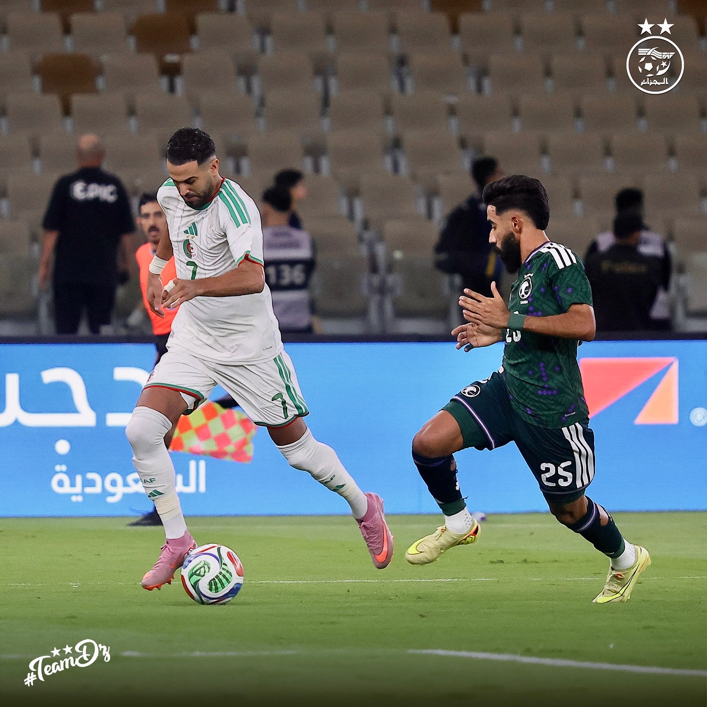 Les joueurs de l’Algérie ont offert une prestation solide face à l’Arabie Saoudite, s’imposant 2-0 à Djeddah. Une rencontre marquée par une belle maîtrise collective et des actions offensives bien construites, illustrées dans cette sélection d’images.