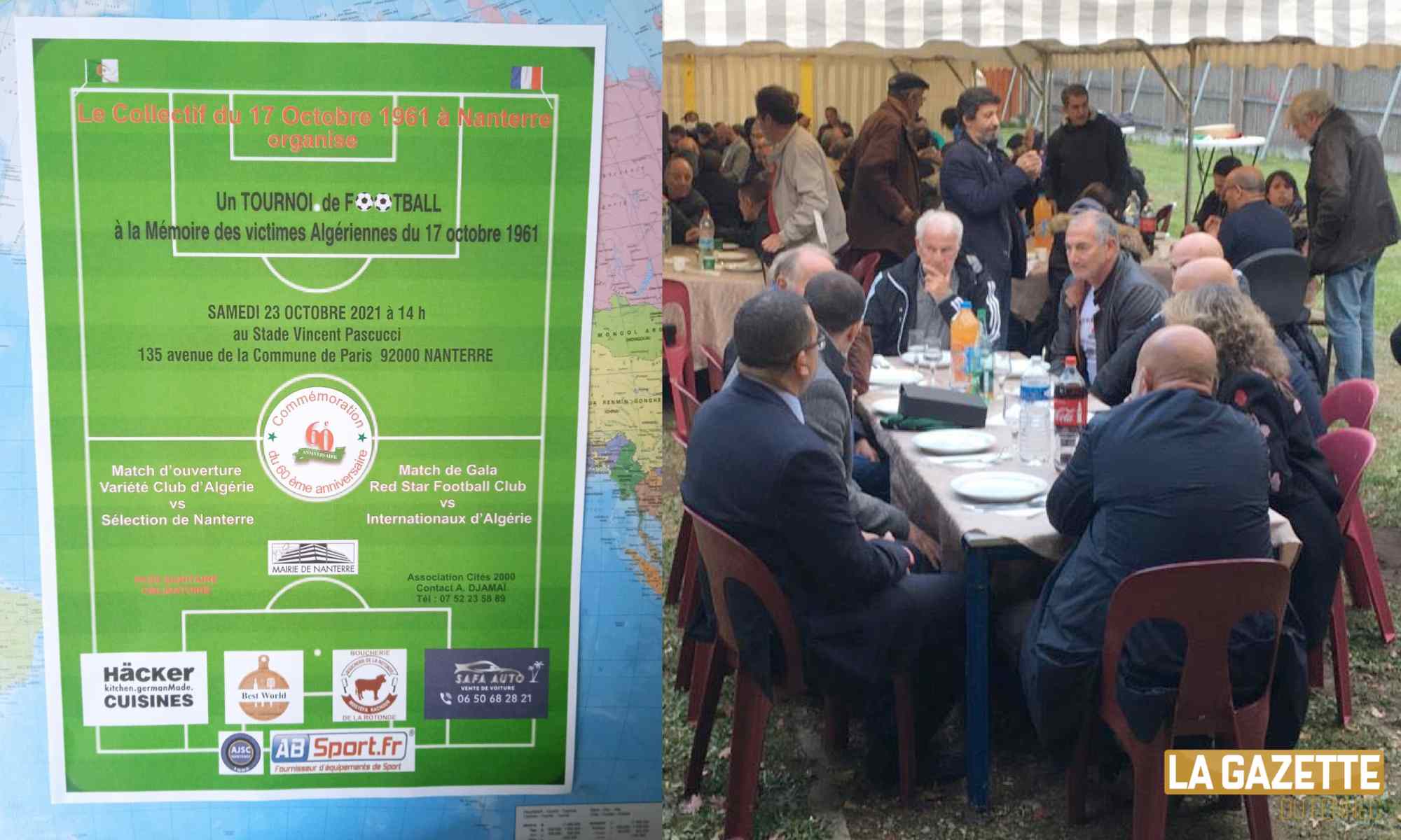 En présence du maire de Nanterre et du Consul d’Algérie en France, une minute de silence a été respectée avant la rencontre en hommage aux martyrs du 17 octobre 1961. La rencontre s’est naturellement déroulée dans une ambiance bon enfant et s’est conclue par un repas qui a rassemblé tous les participants de cet évènement qui mérite un grand respect.