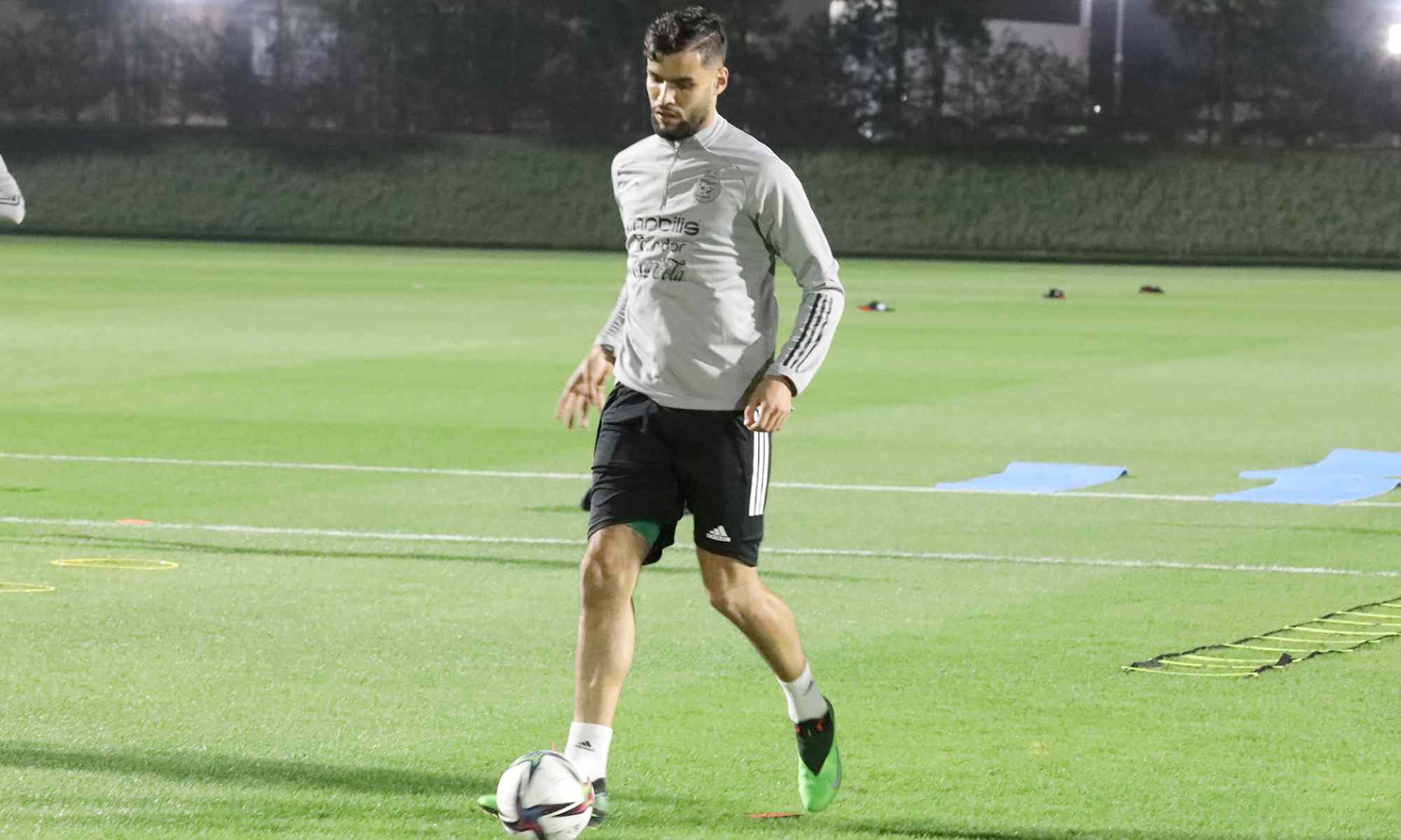 “Les camarades de Mehdi TAHRAT ont entamé leur séance quotidienne à 16h40 (heure locale) et au grand complet après l’arrivée dans la matinée des M’BOLHI, BRAHIMI, ABDELAOUI et SAYOUD, ainsi que l’incorporation de TOUGAI, laissé au repos lors de la séance de la veille” explique la FAF dans son communiqué.