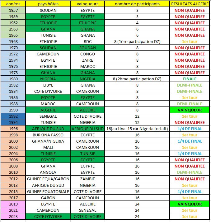 Depuis 1968, le nombre de participants à une CAN est passé à 8 pays. On a ainsi vu l’émergence de nouveaux pays qui n’avaient pas l’habitude de participer à la grande messe africaine, comme… l’Algérie de Lalmas. Lors de cette période, le pays organisateur était encore présenté comme le favori numéro 1 pour le sacre final, d’autant plus lorsque c’était un « grand » d’Afrique qui organisait le tournoi. Ainsi on a vu le Soudan (grand d’Afrique des années 60) gagner chez lui en 1970, le Ghana en 1978, le Nigéria en 1980, l’Égypte récoltait sa 3ème étoile en 1986 et enfin l’Algérie, en 1990, se voit enfin couronner roi d’Afrique, après 1 finale et 3 demi-finales lors des 5 dernières CAN.
