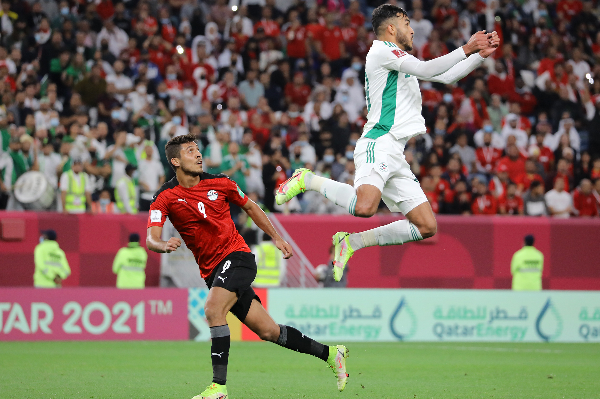 Dix minutes plus tard, les Pharaons obtiennent un penalty sifflé après consultation du VAR. L’arbitre argentin Tello Facundo sanctionne Tougai. Même si M’Bolhi est parti du bon côté, le capitaine Elsoulia égalise et relance complètement la partie. À cet instant, l’égalité était -encore une fois- parfaite entre les deux sélections qui avaient écopé de deux cartons jaunes chacune. L’avertissement duquel écopait Zakaria Draoui à la 71e minute a fait rétrogradé l’Algérie de la première place au critère du “fair play” (-5 contre -6).