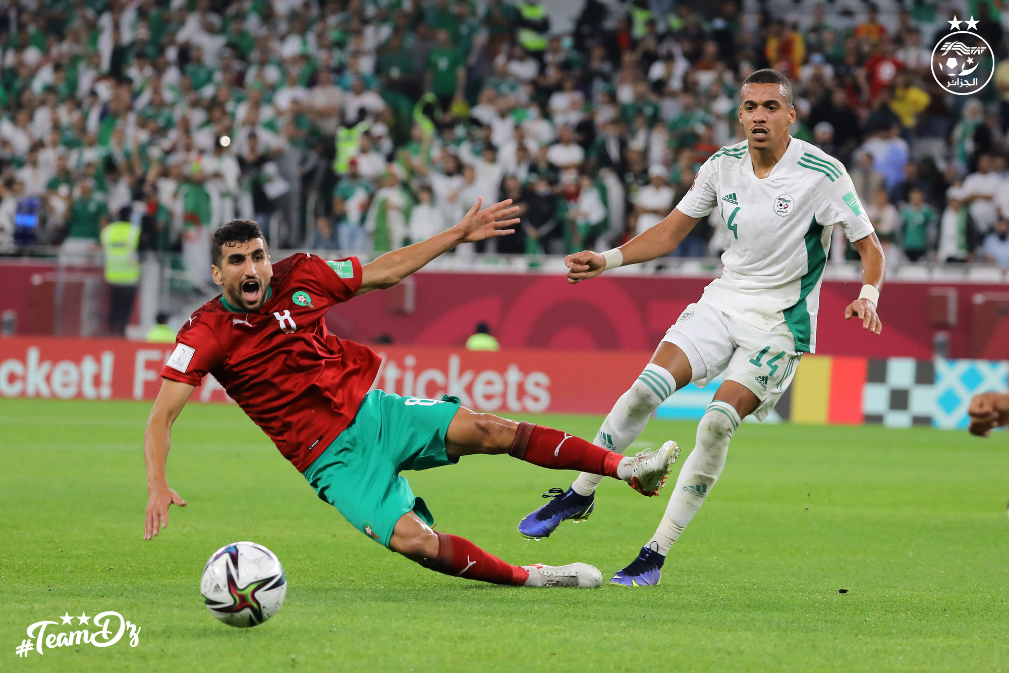 Le quart de finale de la Coupe Arabe FIFA 2021 (30 novembre – 18 décembre) entre l’Algérie et le Maroc a tenu ses promesses. La lutte pour la place dans la carré d’as était à son extrême. Le dernier mot est revenu à notre équipe nationale qui s’est offert le scalp du champion sortant de cette épreuve et double-vainqueur du CHAN (2018 et 2020) en s’imposant aux tirs au but (2-2/3 t.a.b 3).