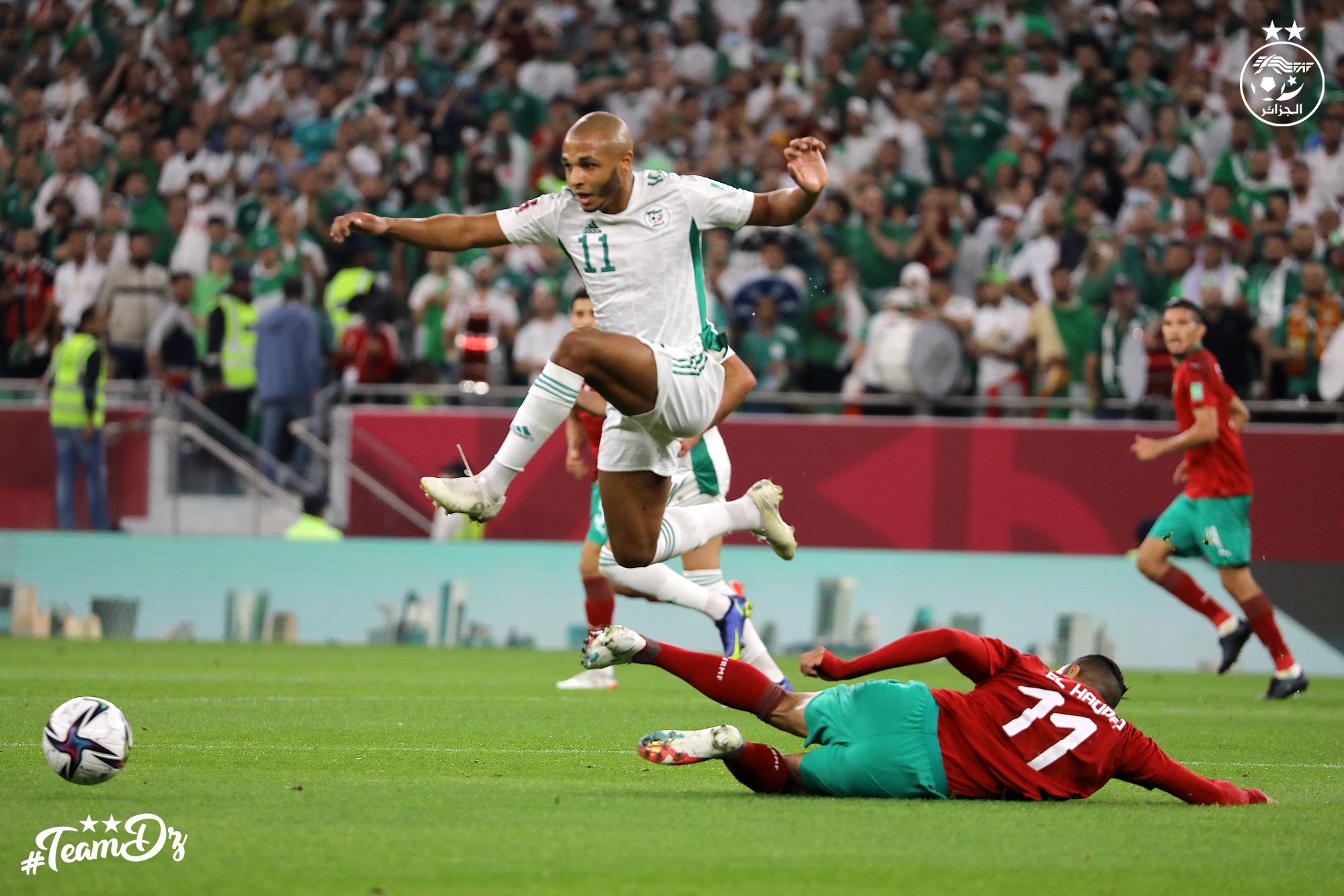 Après la demi-heure de jeu, le rythme a baissé. Mais les travées du stade d’A-Thumama ont maintenu la température d’encouragement assez élevées. Juste avant a pause, Zerrouki, sevré de ballons, a été lancé en profondeur. Le sociétaire du Paradou AC pouvait ouvrir le score. Mais il a pris la mauvaise décision en préférant s’engouffrer au lieu d’enrouler directement du pied droit (45′). Le contact dans la surface avec Marwane a été jugé régulier par e referee. Deux minutes plus tard, Tayeb Meziani, préféré à Hilal Soudani sur le flanc droit, n’a pas connu plus de réussite. Les deux prétendants du soir regagnaient les vestiaires dos à dos.