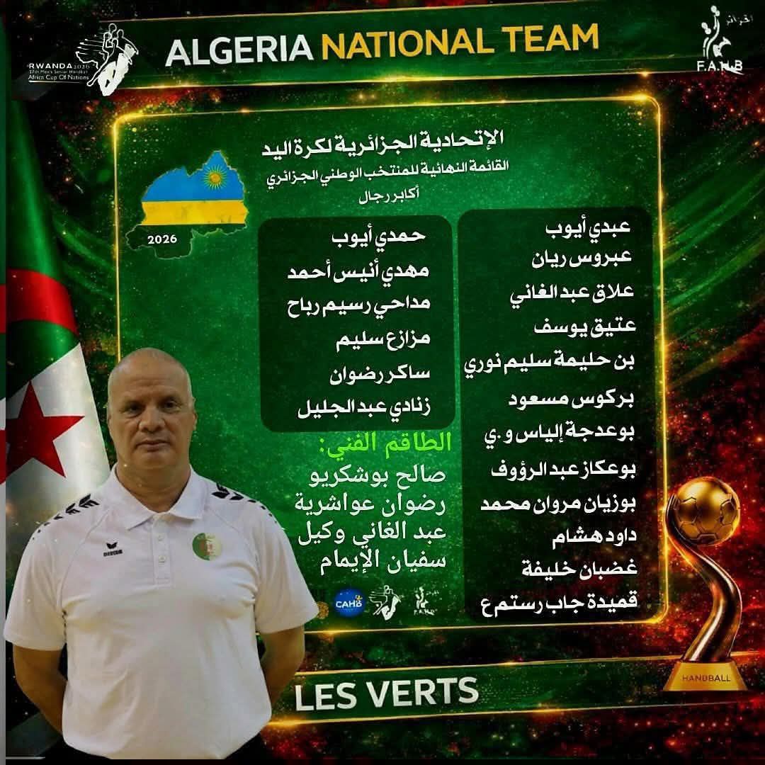 Pour sa cinquième campagne africaine à la tête de la sélection, le technicien de 63 ans vise le podium. Vice-champion d’Afrique en 2024 face à l’Égypte, l’Algérie a peaufiné sa stratégie, à travers une série de stages intensifs sur le territoire national pour les joueurs locaux puis une préparation de haut niveau en Slovénie, ponctuée de tests probants face à des écuries européennes. Sur le terrain, Bouchekriou s’appuie sur une alchimie entre générations. Des piliers, comme Khalifa Ghedbane et Ayoub Abdi, encadreront de jeunes pépites, telles qu’Elias Bouadjadja ou le jeune Khencheli Madhi Ahmed Anis. Entourés surtout de l’emblématique Messaoud Berkous, qui s’apprête à disputer sa 10e CAN consécutive. Avant de s’envoler pour Kigali, le capitaine des Verts a annoncé sa retraite internationale. L’arrière-gauche de la sélection nationale a déclaré que la CAN-2026 sera la dernière dans sa carrière. «Il est temps pour moi de passer le témoin à la jeune génération. J’ai porté le maillot de l’équipe nationale pour la première fois à l’âge de 17 ans. Aujourd’hui, j’ai 36 ans. J’ai toujours donné le meilleur de moi-même pour faire honneur à mon pays et apporter la joie à nos supporters. J’ai vécu de grands moments de joie avec la sélection, mais aussi des périodes moins fructueuses. Dans l’ensemble, j’estime que mon expérience avec les Verts était assez positive. Ainsi, cette édition de la Coupe d’Afrique des nations, au Rwanda, sera la dixième et dernière, pour moi en sélection. Je pense que l’équipe nationale dispose d’un riche effectif, composé principalement de jeunes et talentueux joueurs, tout à fait capable d’assurer la relève.»