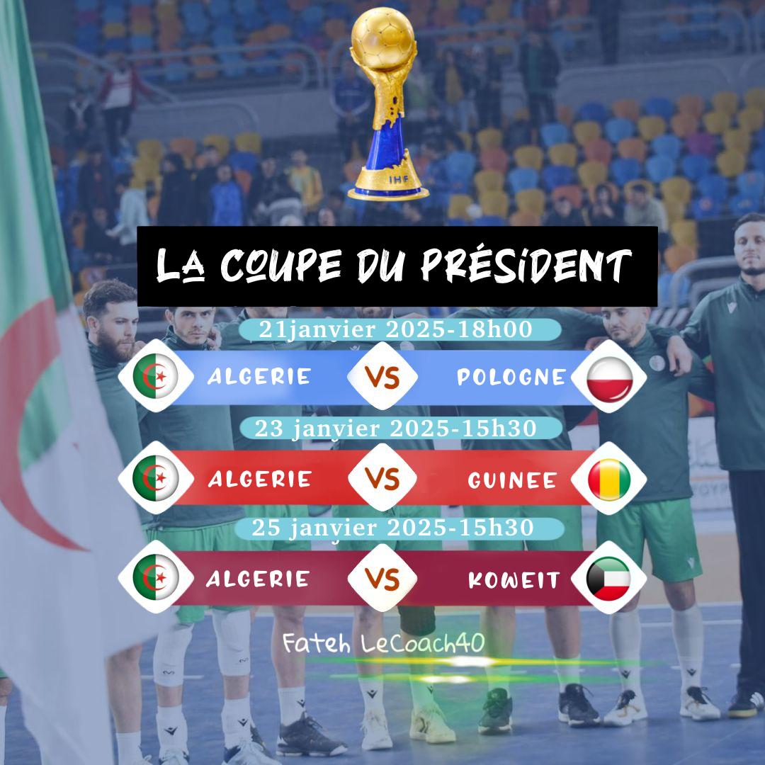 Le premier match des Fennecs se jouera ce mardi 21 janvier, à partir de 18h, face à la Pologne. Par la suite, jeudi 23 janvier (15h30), l’Algérie affrontera la Guinée. Elle clôturera ses matchs face au Koweït, samedi 25 janvier (15h30).