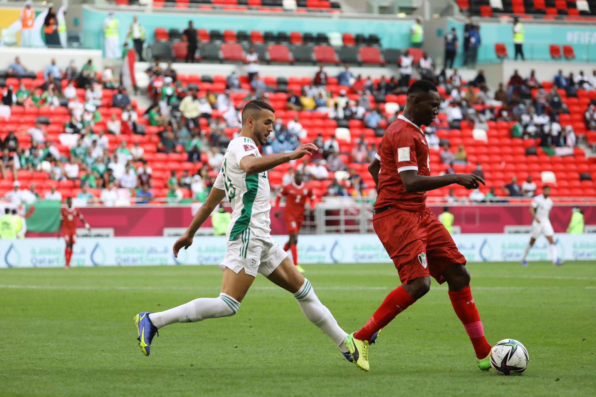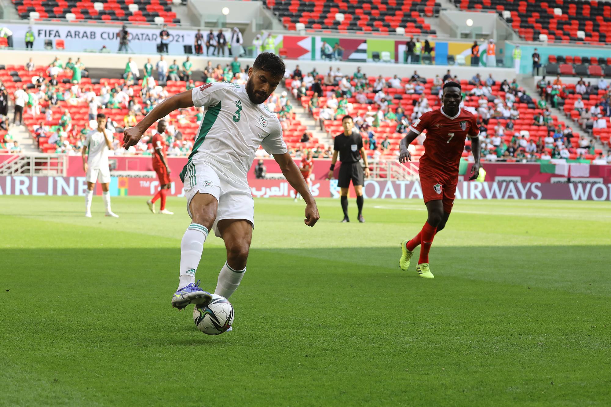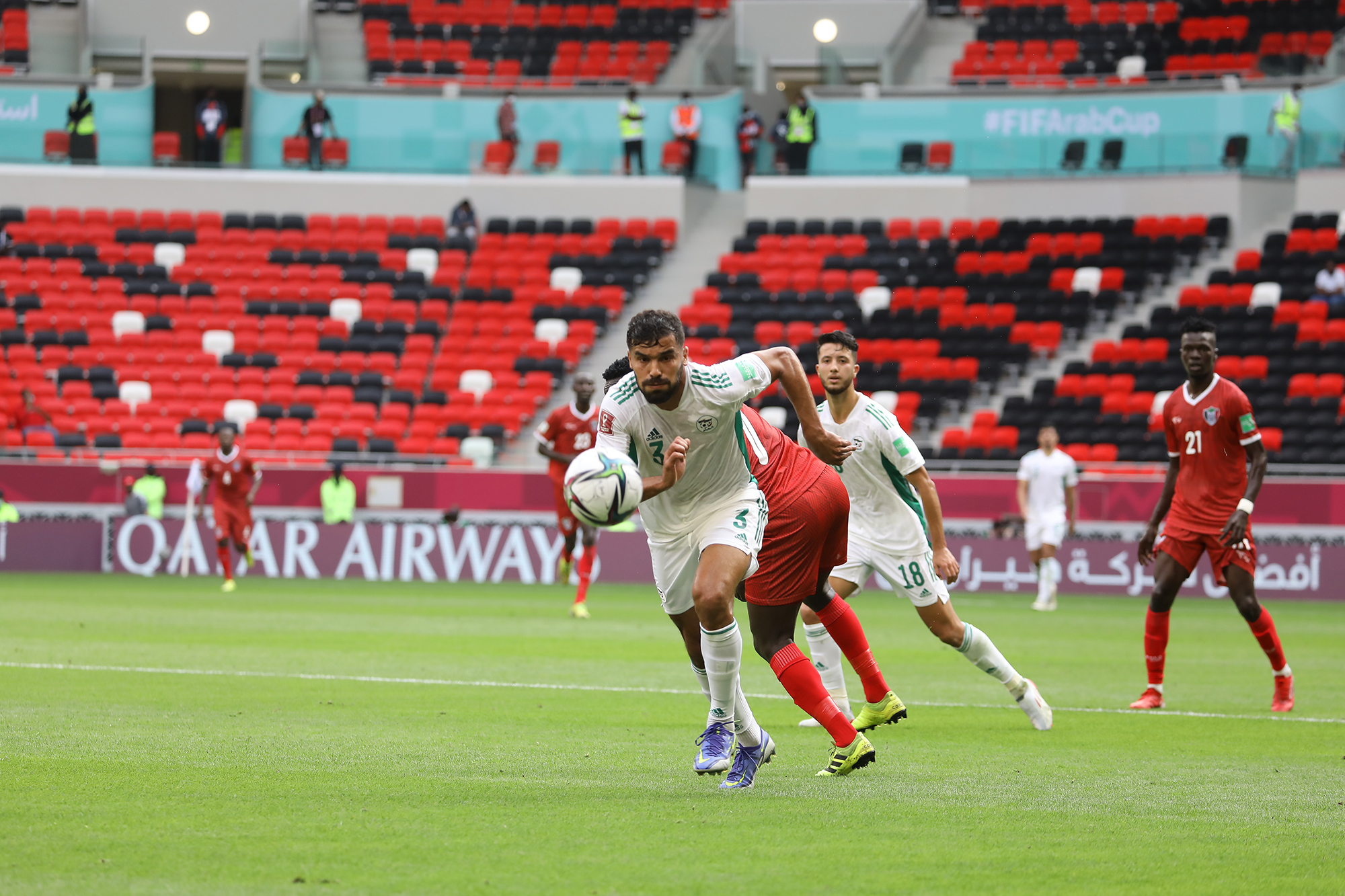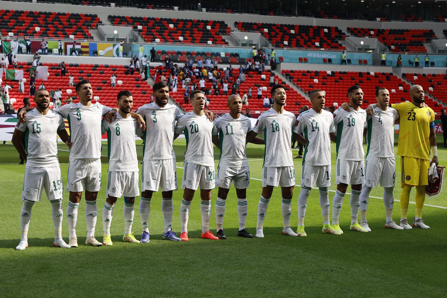 Pour son entrée en lice lors de la Coupe Arabe FIFA 2021, l’Algérie a facilement dominé le Soudan d’Hubert Velud. Une victoire éclatante (4-0) pour les hommes de Madjid Bougherra grâce à des réalisations de Bounedjah (x2), Soudani et Benlamri. Les images de la rencontre.