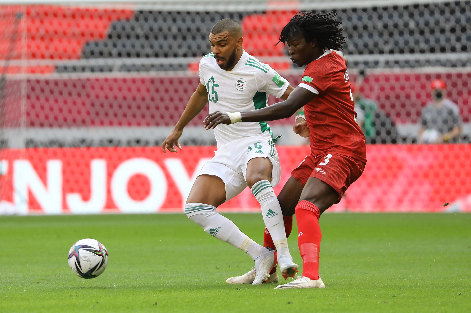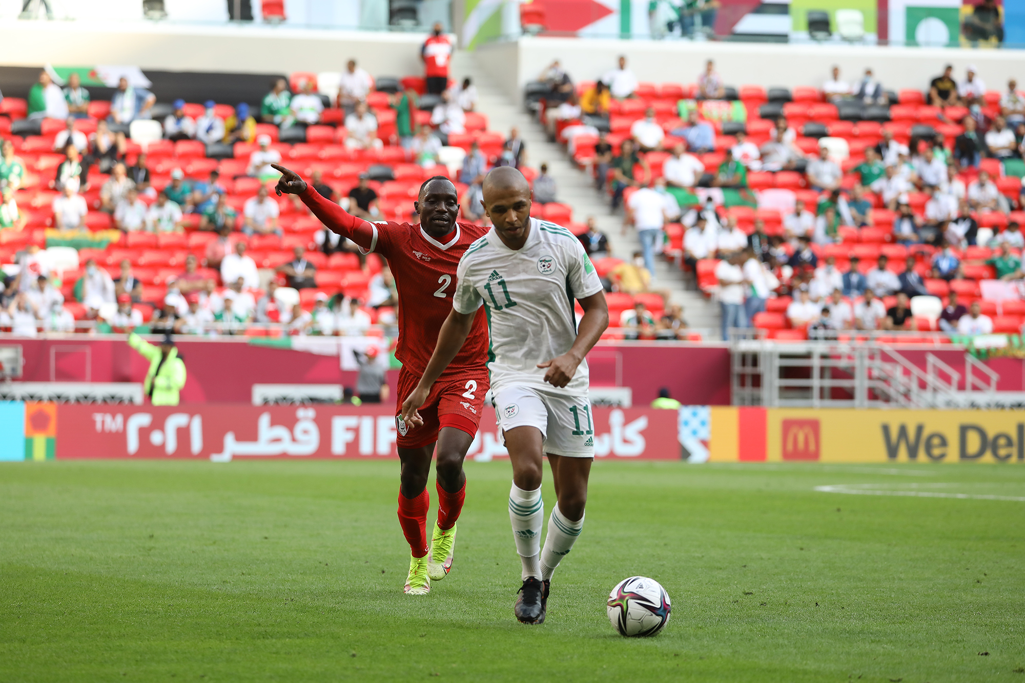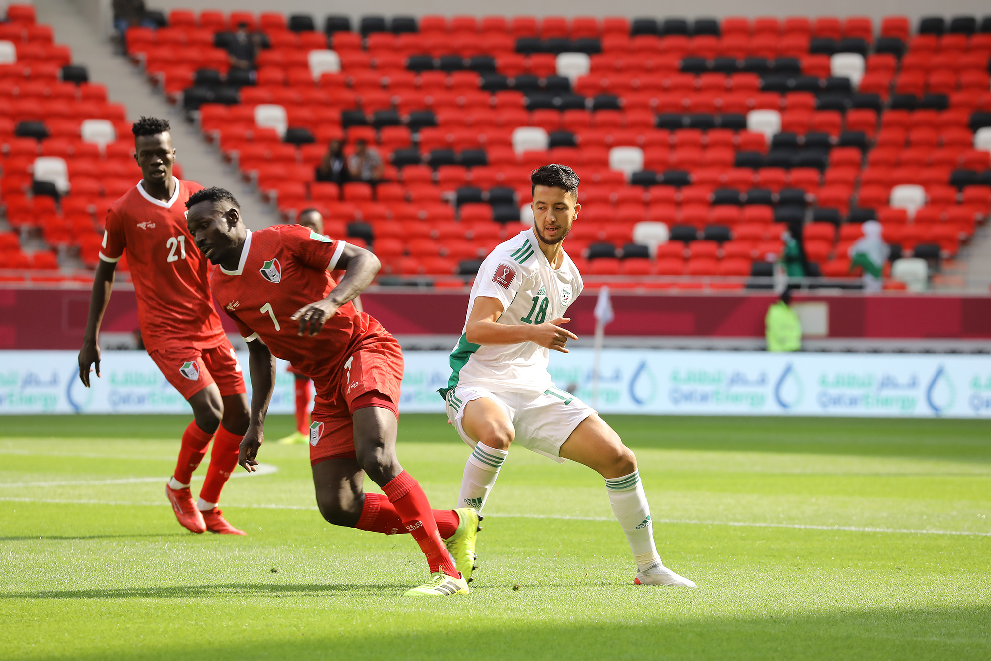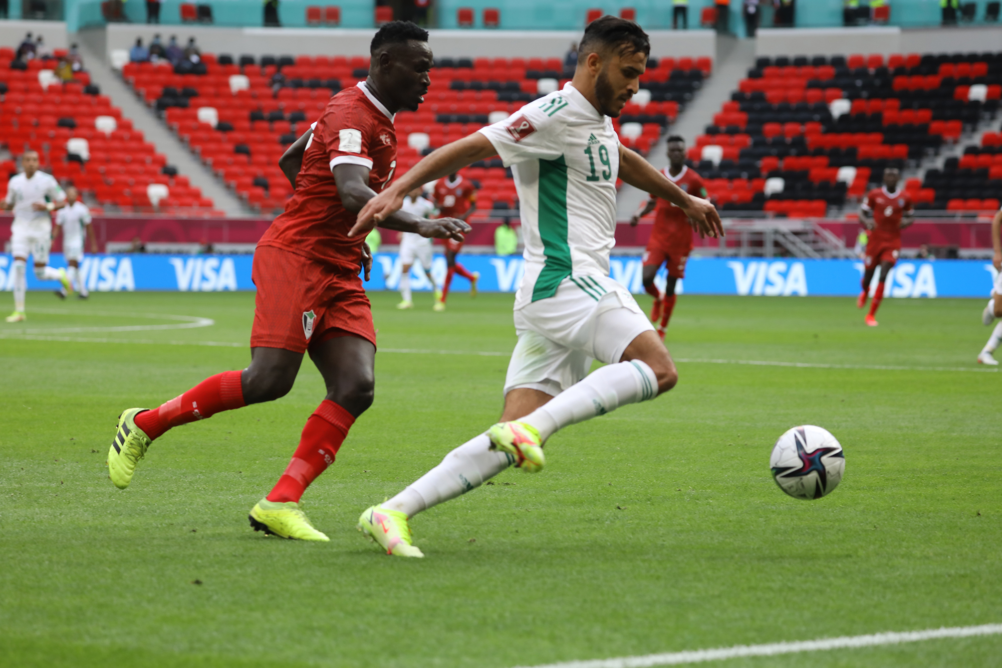 Pour son entrée en lice lors de la Coupe Arabe FIFA 2021, l’Algérie a facilement dominé le Soudan d’Hubert Velud. Une victoire éclatante (4-0) pour les hommes de Madjid Bougherra grâce à des réalisations de Bounedjah (x2), Soudani et Benlamri. Les images de la rencontre.