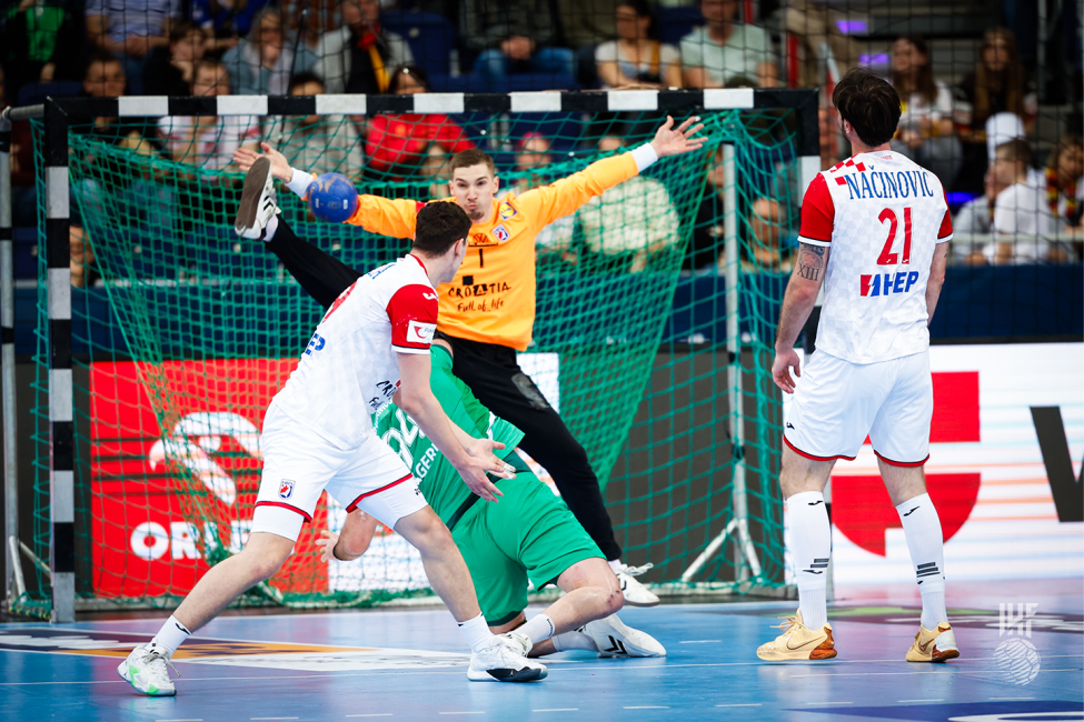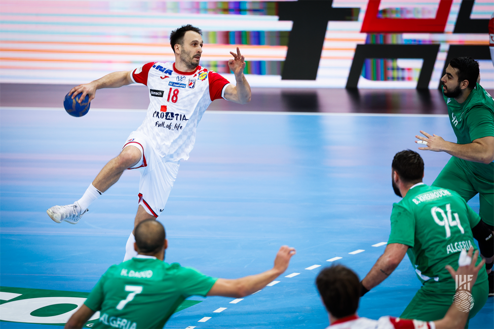 Quand ils se retrouvent devant une défense mobile et compacte, les vices champions d’Afrique n’arrivent pas à passer ce rideau défensif. Ils restent sur une attaque stéréotypée où les courses croisées se succèdent pour amener aux tirs Abdi ou Berkous. Quand l’adversaire a lu et connaît cette tactique, les interceptions sont nombreuses et le gardien DZ se fait punir en contre-attaque. D’autant plus, quand l’adversaire a un excellent gardien. En effet, le gardien croate a sorti toute la panoplie existante d’un grand gardien de handball, afin d’annihiler les tentatives algériennes. Si la Croatie a mené 4-0 en 5 min, c’est en partie grâce à son dernier rempart. Les cinq premiers tirs ont été arrêtés par Dominik Kuzmanovic. Grâce à ses arrêts et aux shoots de Glavas et Mihic, la Croatie vire logiquement en tête à la fin de la pause, 15-11.