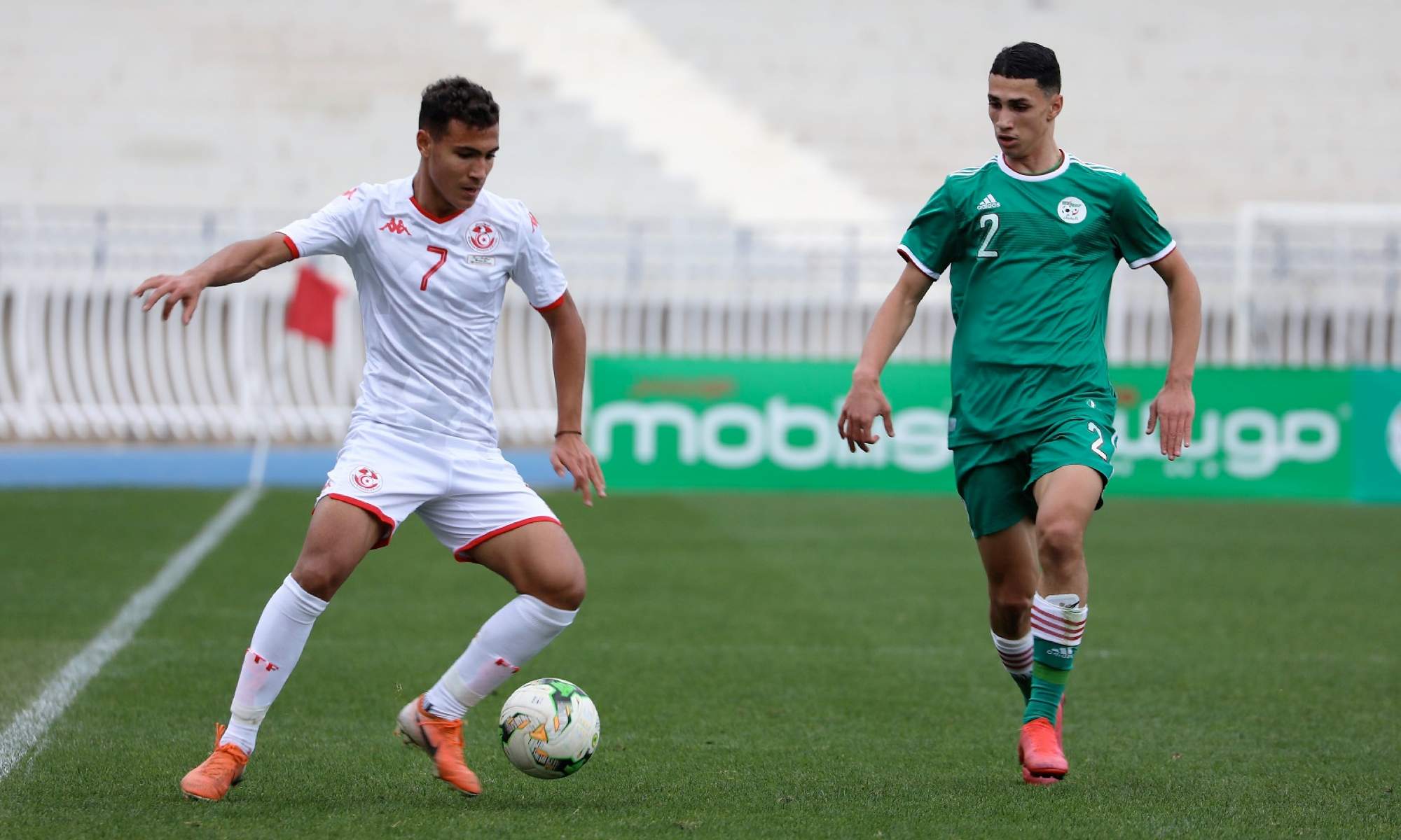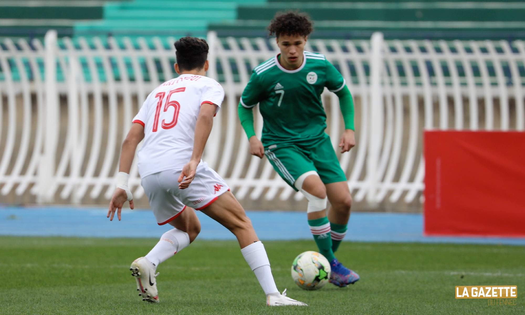 Après 15 minutes bien maitrisées par les Algériens qui ont fait tourner le ballon, Yannis Lagha (Olympique Lyonnais) a eu l’occasion de marquer le premier but du match mais son tir passa très au dessus de la cage tunisienne. Sur l’ensemble de la première mi-temps, peu de choses à signaler, si ce n’est, les percussions très intéressantes de l’ailier gauche algérien, Yanis Baghdadi (Reims), qui a mis en difficulté son adversaire.